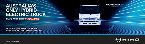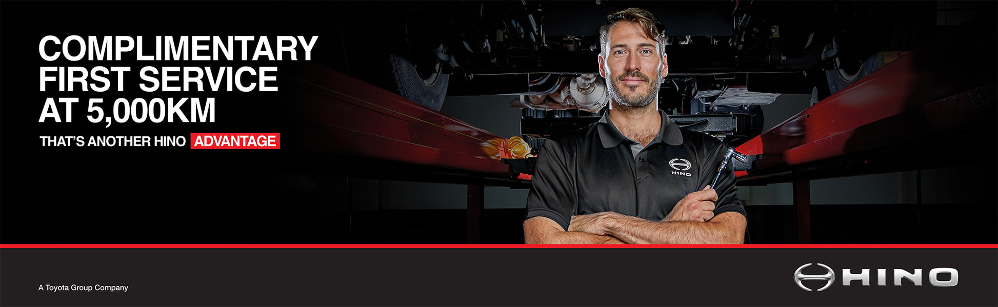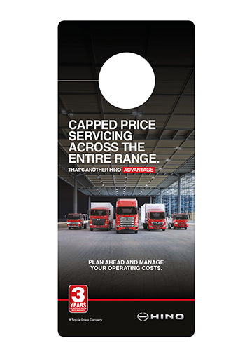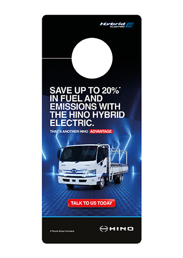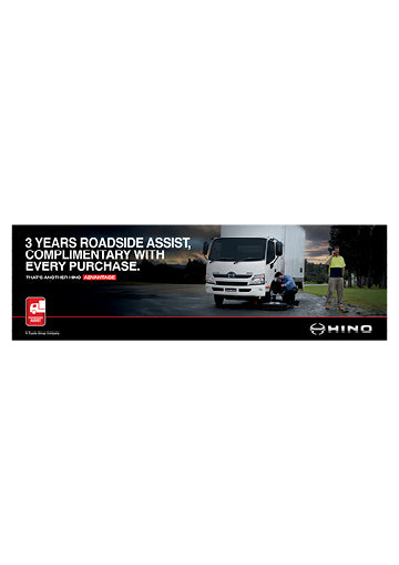 Windscreen Banners: 3 × Hybrid Electric, 3 × Free First Service, 3 × Roadside Assist, 1 × Genuine Parts, 1 × Hino SmartSafe, 1 × Hino Connect